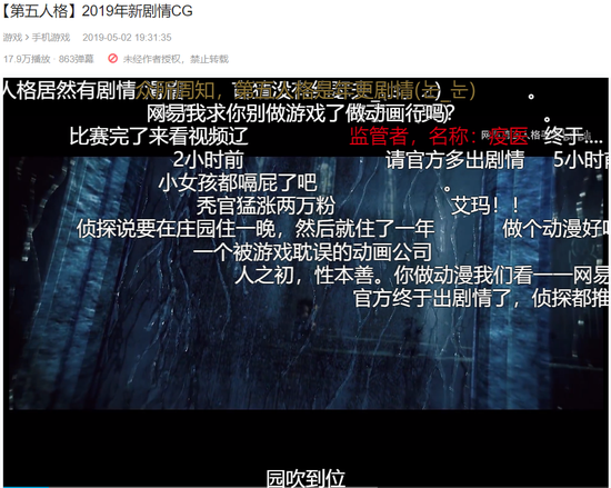 游戏上线后,《第五人格》还围绕主线剧情,在游戏外公布了剧情动画短片《莫比乌斯》。由于动画的制作品质不错,不少弹幕调侃“网易成为又一个被游戏耽误的动画公司”。