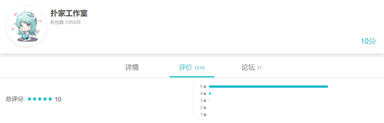 主要发行模拟经营、沙雕、角色扮演等休闲单机小游戏的扑家工作室,在TapTap拥有近14万粉丝,1600多条玩家评价中,获得了10分满分的评分,“扑家出品,必属精品”是其玩家说到频率最高的话。