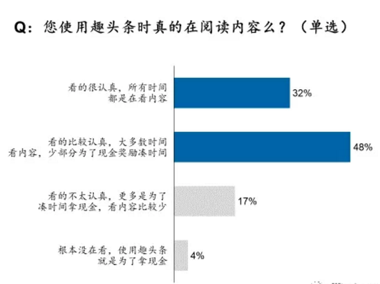 虽然趣头条的整体留存率或许不高,但ZP调研发现,经常使用趣头条用户大都在认真读内容,而不是玩积分体系拿现金。