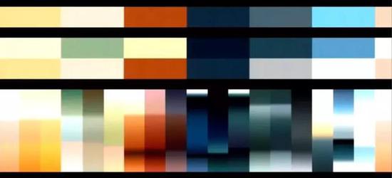 我们做《风之旅人》场景都是按照这个颜色顺序来的,左侧代表游戏开始和前段时间,右边是游戏后半段体验。左上角的颜色是游戏开始的色调,随后就会变得越来越复杂。