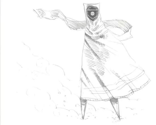 这张图是我给《风之旅人》画的第一个反派角色,当时的想法是用浮动在空中的可怕生物给玩家带来恐怖感。
