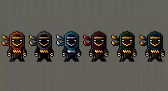 这是我们最终的角色形象,从红色到白色是不同状态下的色彩。