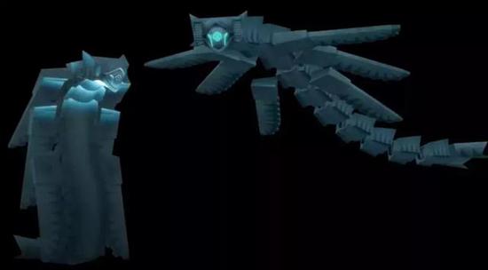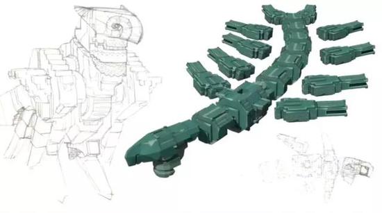 所以我们把它变成了碎片化的角色,首先我想到的是类机器人的雕塑型生物,这是“守卫”的第一个创意: