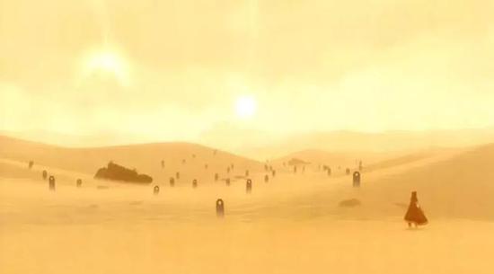 《风之旅人》几乎打破了人们对于一款游戏的认知:简洁唯美的场景、感情丰富的配音和高度留白的剧情,让你可以从感官认同到心灵共鸣,它用浸润在每一个游戏画面里的空旷与孤寂,让玩家感受到自己在大千世界之中的渺小。