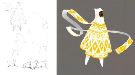 这是游戏内最终角色和第一个创意的对比,你们可能会发现差别很大。