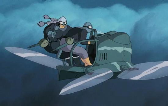 总之,在宫崎骏这里,角色最理想的飞行状态一定不是那种像子弹一样射入世界之中的飞行,流线型的设计正是为了优化那种飞行所提出的要求。但这并不是说宫崎骏的作品里就没有接近我们一般认知的飞行器,只是那些看起来更符合常识的飞行装备往往都和受到批判和嘲讽的角色联系在一起,绝不会是理想化的少女主角们的选择。对那些飞天少女而言,飘来荡去的乘风翱翔似乎是更合适的。