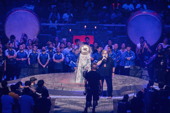 代表东方柔美的扇子元素出现其中,而伴乐由交响乐队和中国民乐组成,东西方文化相互融合。随后在震天战鼓中,参赛战队悉数登场。OG战队作为去年卫冕冠军压轴出场,同时也带来了此次TI9赛事的无上荣耀:冠军之神盾。