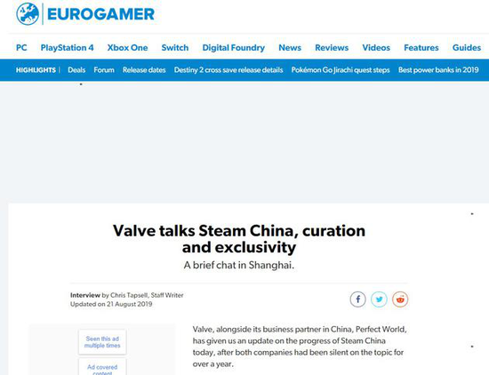 V社官方谈蒸汽平台:为中国玩家带来本地化服务