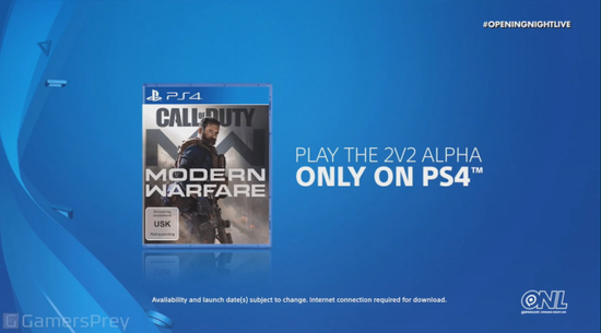另外,官方称《使命召唤:现代战争》将支持跨平台联机,并且允许玩家在联机时选择主机 VS 主机或者主机 VS PC。2V2枪战模式测试版将在PS4平台独家举行。