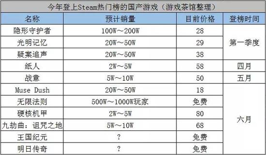 以下是今年进入Steam热门榜的国产游戏名单: