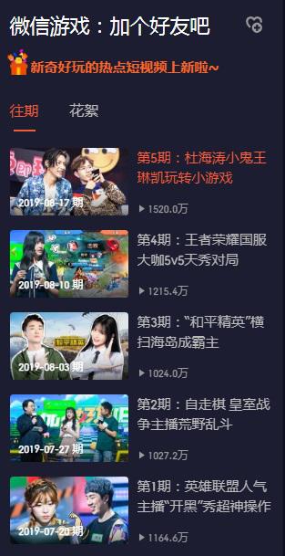 这种做法也显然受到了综艺用户的青睐。自7月20日第一期《英雄联盟》专场以来,《微信游戏:加个好友吧》每逢周六更新,目前已经更新至第五期,涵盖《皇室战争》《DOTA自走棋》《和平精英》《王者荣耀》等多款游戏。