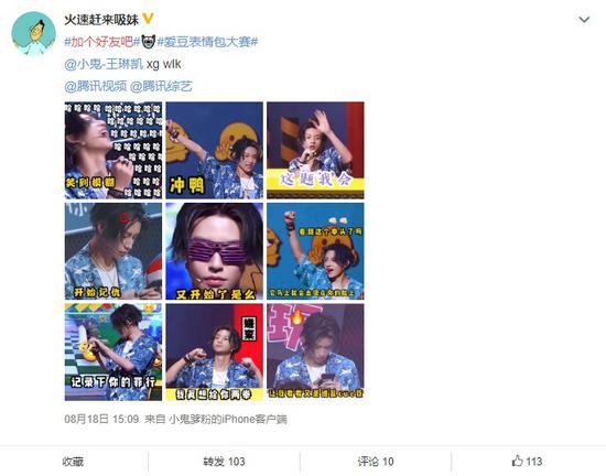从用户具体评论看,《微信游戏:加个好友吧》的确吸引了很多明星粉丝对节目,以及对游戏的关注。在第五期节目更新的第二天,就有不少粉丝自制的表情包流出,这些表情包非常诙谐、本身是一种有趣的UGC内容,通过微博等其他社交媒体的传播,容易吸引其他用户的注意,对游戏出圈很有帮助。