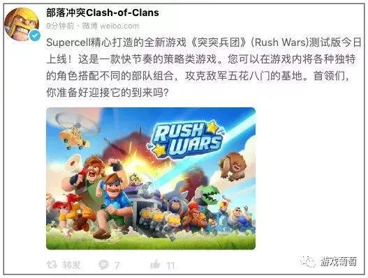 按照官方说法,新作是一款“快节奏的策略游戏”。另外,《部落冲突》《皇室战争》等Supercell游戏的官方微博,也在今日下午同步推送了新作的测试消息,并从中揭示了该作的中文名称——《突突兵团》。