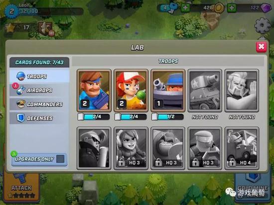 游戏采取了异步PVP机制游戏的战前策略,主要围绕着兵种组合进行,具体来说,玩家需要在人口数限制下,以及出于对兵种特性的了解,搭配出合适的出战队伍;而每一个兵种的获取与养成,走的还是Supercell惯常使用的‘开箱奖励’与‘卡牌累积’的方式。游戏中的核心资源也依然是钻石与金币两种:前者主要用于卡牌升级;后者则用于购买商店中的卡牌。