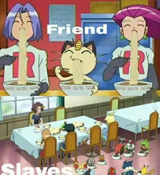 不知有意还是巧合,此次让宝可梦成为训练师的“伙伴”而非“工具梦”,也暗合此前粉丝中间流传的一个梗,即反派火箭队把宝可梦喵喵当“人”,而主角们反而把宝可梦当“宠物”。如今宝可梦地位提升,似乎也可以看作是GAME FREAK与玩家交流的一个示好动作。