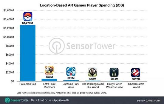 根据Sensor Tower的统计,《一起来捉妖》在iOS上迄今已经获得了超过5000万美元的收入,成为历史收入最接近Pokémon GO的一款产品,甚至远超过Pokémon GO研发商Naintic自家的AR新作《哈利波特:巫师联盟》。
