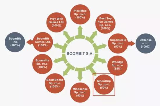 考虑到庞大的买量规模和聘请PewDiePie这样的大主播推广,可能很多人会问,Habby哪来那么多的营销资金?这是《弓箭传说》成功的第二个谜题,因为人们很少看到这家公司的融资信息。不过,Habby与BoomBit之间的关系令人关注,基于BoomBit公开发布的文档显示(该公司2019年5月14日在华沙上市),Habby还是该公司的合资方(以MoonDrip名义)。虽然MoonDrip是BoomBit的中国发行团队,但两家之间的经济关系还是很容易捋清楚的。
