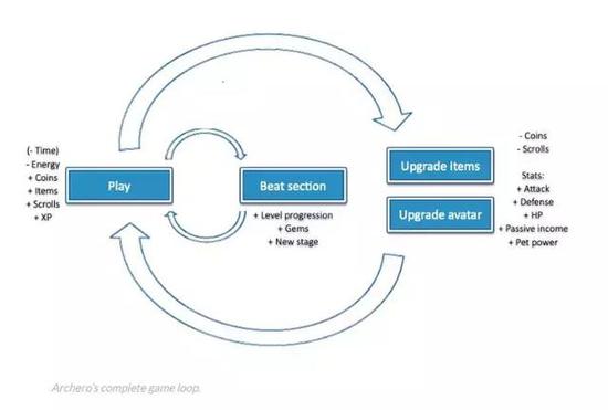 基于以上分析,我们可以注意到,《弓箭传说》根据玩家的熟练度而把游戏目标转变成了刷图,从超休闲游戏的高分,转换到了到游戏的ARPG系统,而有瑕疵的核心玩法设计实际上会给玩家带来比较沮丧的后期体验,带来中长期比较高的流失率。