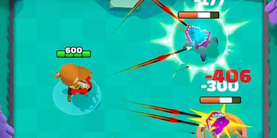 为了实现比较高的可达性,超休闲游戏通常都会使用非常简单的操作方式,点触式摇杆在玩家触摸屏幕时就会出现,非常适合移动平台操作。《弓箭传说》的玩法包括两种状态:角色移动和射击。移动由玩家操作,而射击则是自动完成,并且目标是最近的敌人。把玩家与游戏之间的操作分开的做法非常聪明,既给了玩家代入感,又简化了操作需求,目前很少有产品这么做。