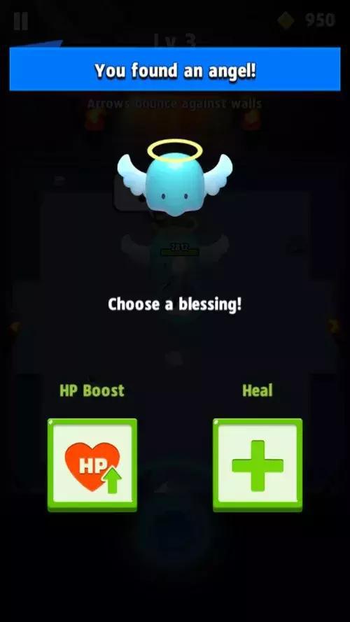 正常关卡(1-3阶段)加入了天使祝福,并且通过第四阶段(BOSS战之前)增加更多的支持。遇到天使是可以预测的,因此带来了稳定的预期,给玩家提供治疗或者随机能力。如果玩家不需要治疗,他们可以给限制技能池增加新能力。