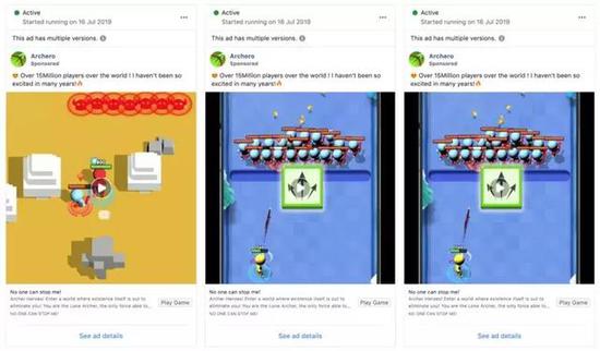 另外,大多数的广告视频很明显是专注于《弓箭传说》的玩法元素,这样很容易吸引超休闲游戏玩家的注意力。更不用说的是,游戏的整体艺术风格也很容易被用户接受。
