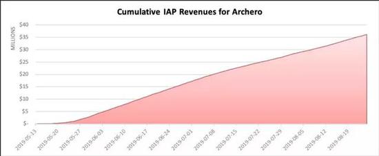 《弓箭传说》是最近几个月比较热门的手游之一,在三个月的时间里就获得了3500万美元内购收入(不含广告变现),同时在多个国家收入榜名列前茅。更值得注意的是,该游戏在全球市场都十分成功(所有的排名、下载和收入数据均来自AppAnnie)。