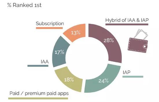 大多数开发者认为,这种广告变现+内购的混合模式是实现更好ROI的最佳方式之一。比如在调查者当中,28%的人选择了混合模式,其次是内购(24%)和付费(18%)模式。