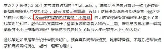 一方面,是由于女性向游戏玩法同质化严重。从页游时代开始,女性向游戏就以模拟经营、换装、恋爱等为主要玩法。到如今,女性向游戏依然被这几种类型占据主流——它们或是专注于某个单一玩法,或是几种经典元素融合,很少有玩法上让人眼前一亮的产品出现。