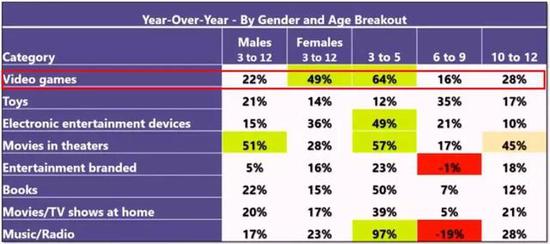 与此同时,3-12岁的女孩游戏消费能力增速远高于这个年龄层的男孩,年增速达到49%。
