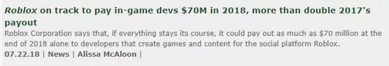 2018年7月,为Roblox创作内容的开发者同比增长一倍多。根据Business Insider的说法,Roblox已经吸引了400万名开发人员在平台上进行创作。公司预计,在2018年底,他们将为7000万美元的开发者费用。