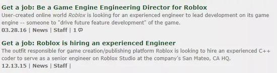 从15年底开始,陆续出现了Roblox在招聘有经验的游戏工程师、技术总监的新闻,Roblox开始了它们的版图扩张。