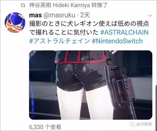 在新作中负责监制的神谷英树,他本人也很看重玩家在游戏外的安利行为。每回逛推特,但凡发现有人夸赞游戏的性感要素,他便会反手送上一个转发。此举,让人以为他或许是最爱收集屁股的游戏制作人。而我的判断在于,神谷光头只是在跟大家一起玩“屁股”梗而已。