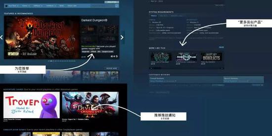 讲得再具体一点,Steam平台有“为您推荐”和“更多类似产品”两个向玩家推送游戏的栏目。但Valve发现“为您推荐”太偏向于热门游戏,个性化不足;而“更多类似产品”则太过死板,不够多种多样。为此,他们调整了相应算法,希望在符合玩家口味的同时为其推送种类更加繁多的游戏。