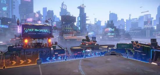 《超级巴基球》在这种小孩都玩得懂的规则下也做了类似的更有视觉冲击力的“加法”。科幻十足的赛博朋克风格下进行英雄和技能的设计,可以让动作游戏更具张力。