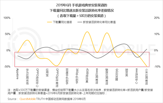 另一方面,6月份多个头部手游渠道的下载量同比增速上涨,但是新安装活跃转化率同比差值却呈现出不同程度的下滑态势。一定程度上也反映出,在行业竞争越来越激烈、用户体验门槛越来越高的情况下,单纯渠道买量的方式面临改变。