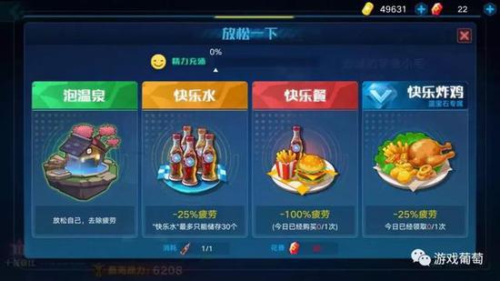 《奥拉星》手游的另一处改变,是加入了体力玩法。刷怪、打副本都将消耗一定体力,如果没有体力将无法战斗。在页游时期,《奥拉星》的做法是五小时之后收益为零,但这在手游时代明显有些过时。如下图所示,“快乐水”“快乐餐”的命名方式体现出了一定的趣味性。