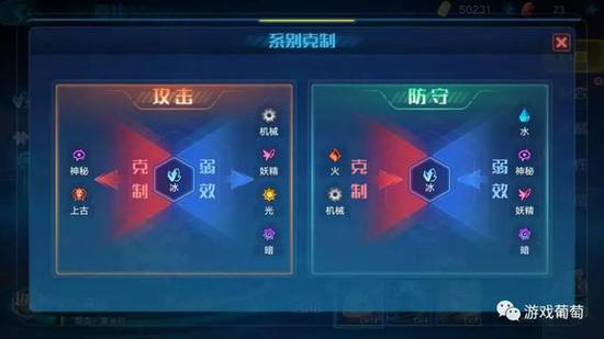 基于系别克制衍生出来的战斗套路、阵容配置是游戏的一个亮点。比如火系、机械系攻击冰系时,享受伤害加成,其他系的伤害无加成;反过来,如果攻击一方对防守一方为弱效效果,所造成的伤害便会受到削弱。
