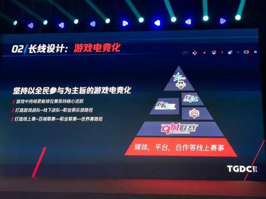 在长线设计中非常重要的一点是游戏的电竞化,这是在最近三年终大家反复提的。