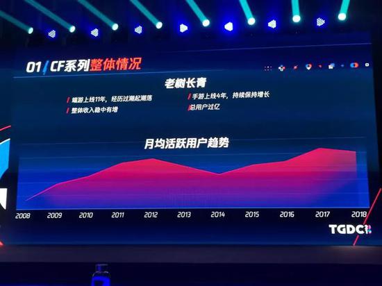 2015年推出了第二款作品CF手游,重新召回了一些玩家,拉到了一些新增玩家,活跃用户又重新进入上涨轨道,2017、2018年突破了过去的高度,最近一直保持非常平稳的增长。