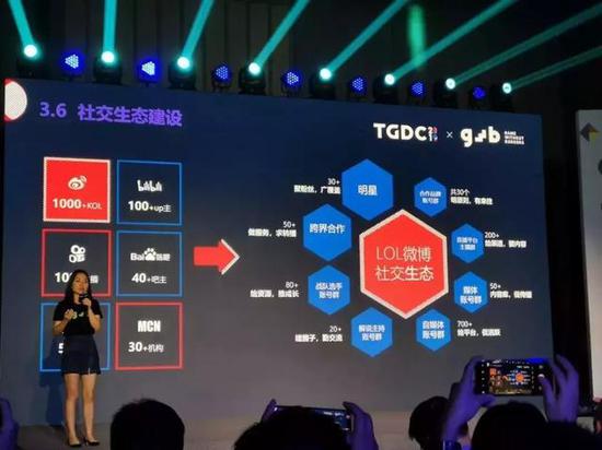 以《英雄联盟》为例,目前微博是赛事生态做的最好的平台,包括明星跨界合作、解说主持、自媒体、媒体、直播平台和主播、战队选手、粉丝后援团、企业合作蓝V账号等,我们都有直接对接。