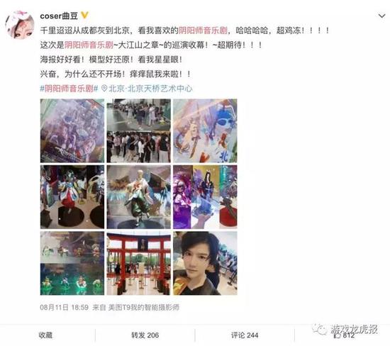 在微博,“阴阳师音乐剧”阅读量达4亿,讨论量也达到了30.3万,不少观众,甚至知名coeser、主播都把观摩经历po到了微博分享