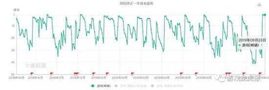 图片来源:七麦数据 2019年《阴阳师》App Store 畅销榜单排名