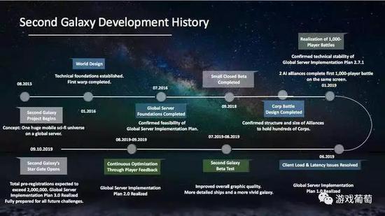 负责研发《第二银河》的BlackJack Studio曾在Twitter上用图片回顾了这个项目的历史节点。这款游戏在2015年8月开始探索方向,2016年启动研发,至今为止测试了3次,今年9月上线全球服。