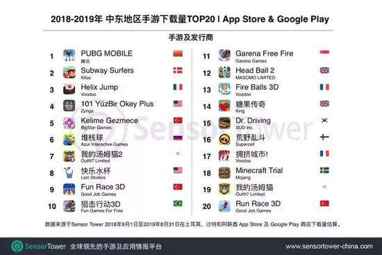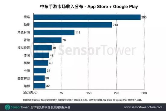 1。 下文 “中东地区” 移动游戏收入数据,来源于 Sensor Tower 商店情报平台在沙特阿拉伯,阿联酋,科威特,土耳其 ,卡塔尔,阿曼,埃及,以色列共8个国家 App Store 和 Google Play 预估收入总和。