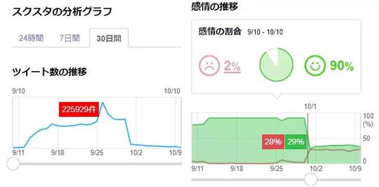 上线之前,玩家对这款游戏的口碑可以说是绝对的好评,根据Yahoo实时检索对Twitter数据的监控能看出,好评率一直维持在90%前后,单日发推量超过22万条。