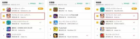 9月27日那天,《LoveLive! 学园偶像祭ALL STARS》(后文简称LLAS)空降日本App Store免费榜、畅销榜第二位,紧追当期最热的两个国民级IP产品《马里欧赛车 巡回赛》以及《勇者斗恶龙Walk》。