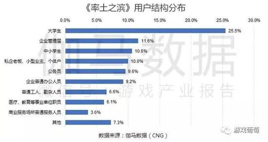 根据伽马数据统计,在《率土之滨》中拥有大专以上学历的用户占比达到九成,而在职业分布上,大学生、企业管理层、私企老板、公务员占比超过了50%。