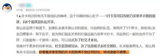 十分不幸的是,玩家生态的不和谐,很快波及了游戏本身,许多玩家开始批评让自己受到“歧视”的三月卡设计,付费玩家也抱怨花钱讨不开心,甚至更多不和谐的声音出现,逐渐蔓延至游戏的职业平衡层面,有损害产品口碑的风险。