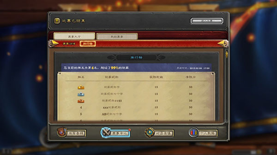 1、本次比赛采用实时匹配的方式,系统将自动匹配战绩相近的对手,玩家需完成共计所有轮比赛,最终完成所有轮比赛的玩家,将根据获胜轮数和净胜分计算排名;