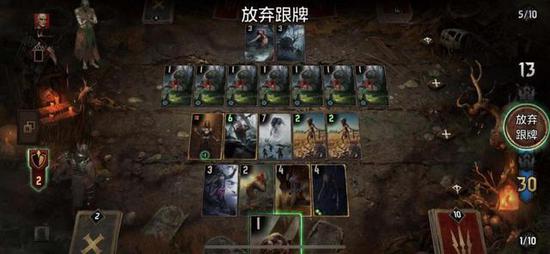 对比其他主打对战的策略卡牌游戏,《巫师之昆特牌》的核心规则显得要独特一些。很多对战型卡牌游戏,采用得都是玩家生命值设计,用互相削弱生命值的方式决出胜负。《巫师之昆特牌》则有所不同,简单来说,昆特牌的玩法核心其实就是“比大小”。